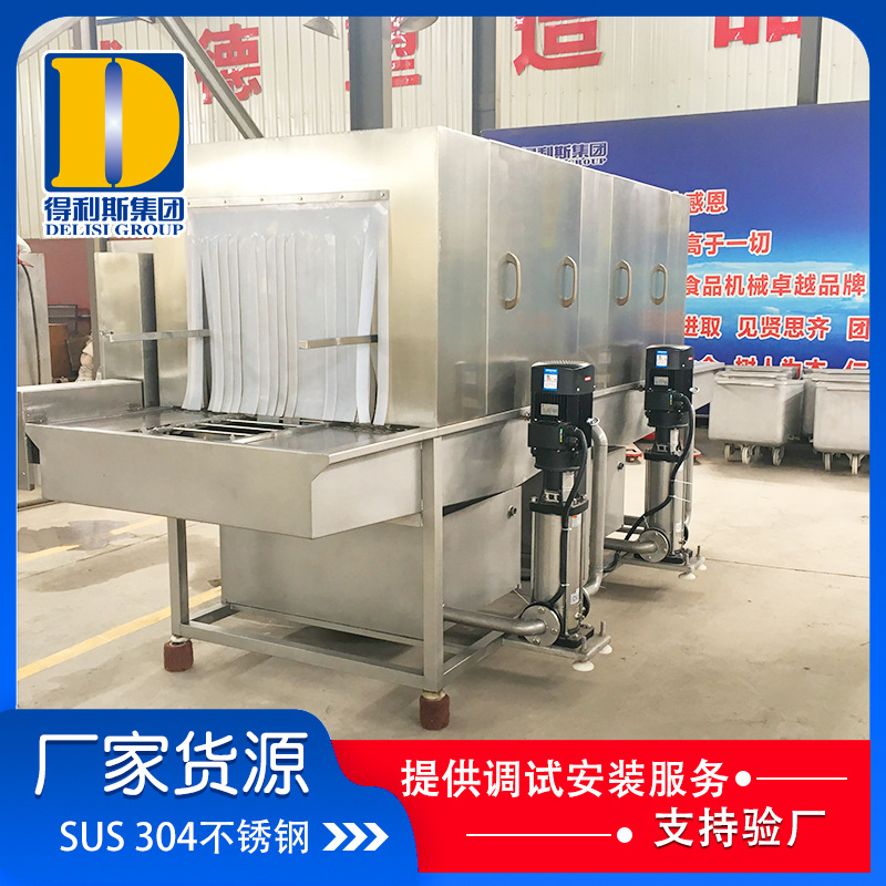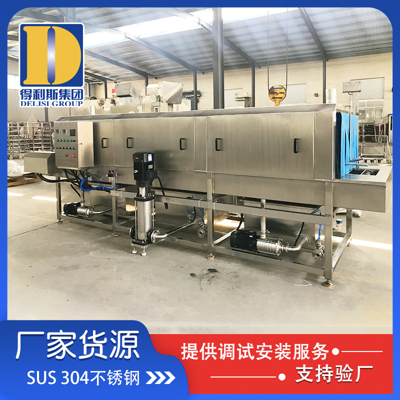 1. 清洗機一高壓噴淋沖洗為主要清洗方式,以約80℃熱堿水為主要洗滌劑,以約80℃熱水為主要清洗力進行清洗;